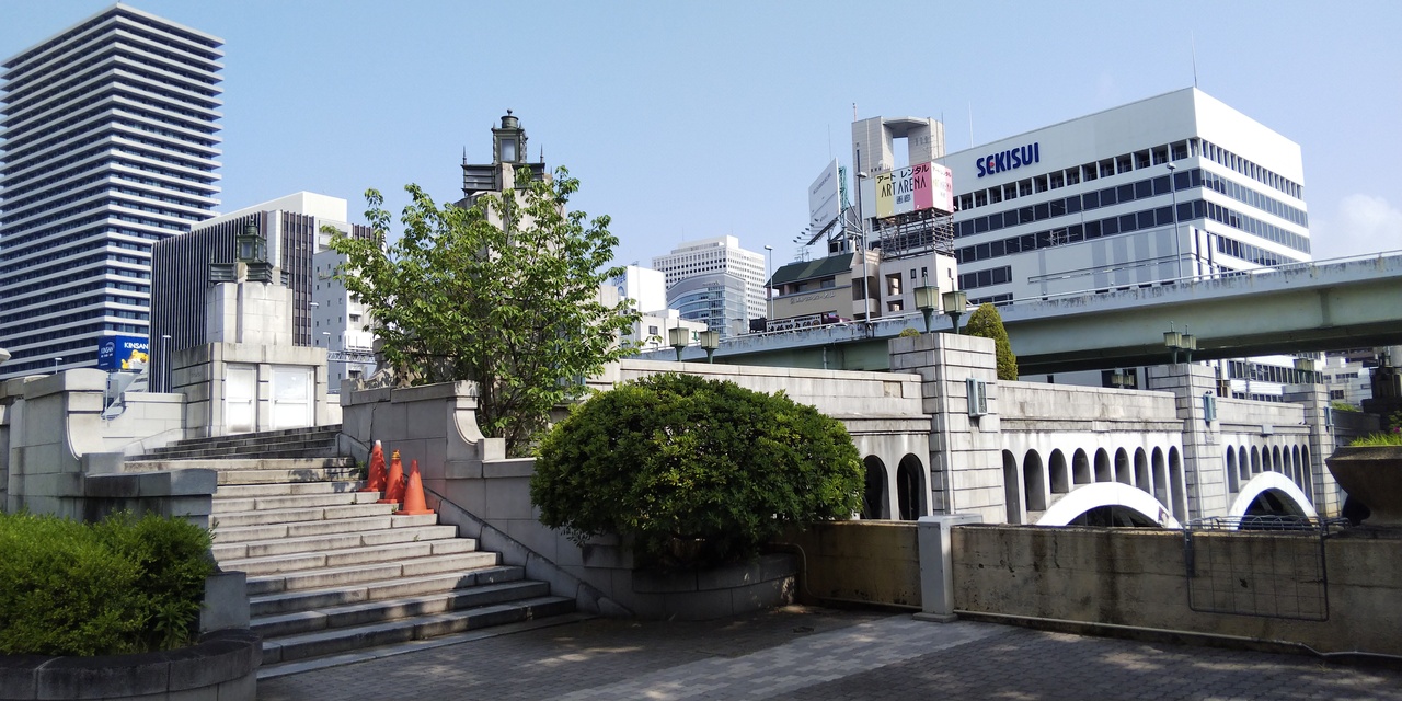中之島図書館のすぐ北側にかかる橋で、歩行者専用の橋です。階段があり少し高くなっているので、往来するヒトも少なく、ベンチや植木があるので、ゆっくりできます。橋からは中之島の風景や4月には桜並木が みれます。
