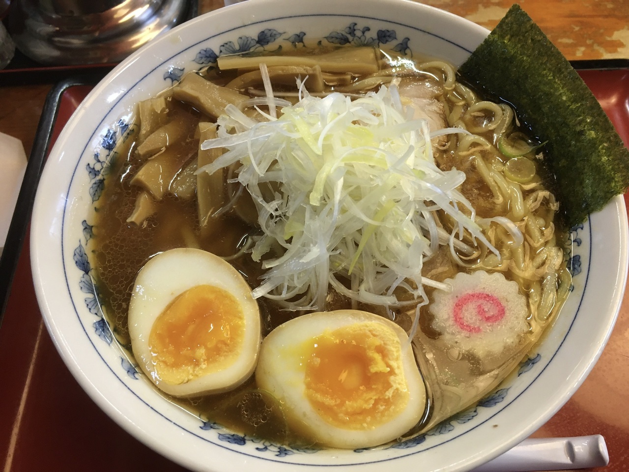 小金井街道沿いの大きなお店ですが、待つ列がでていました。ほどなく大テーブルに案内されました。具入りの特製中華そばをいただきました。チャーシュー、めんま、ねぎに煮たまごがのります。ボリュームがあり、満腹です。