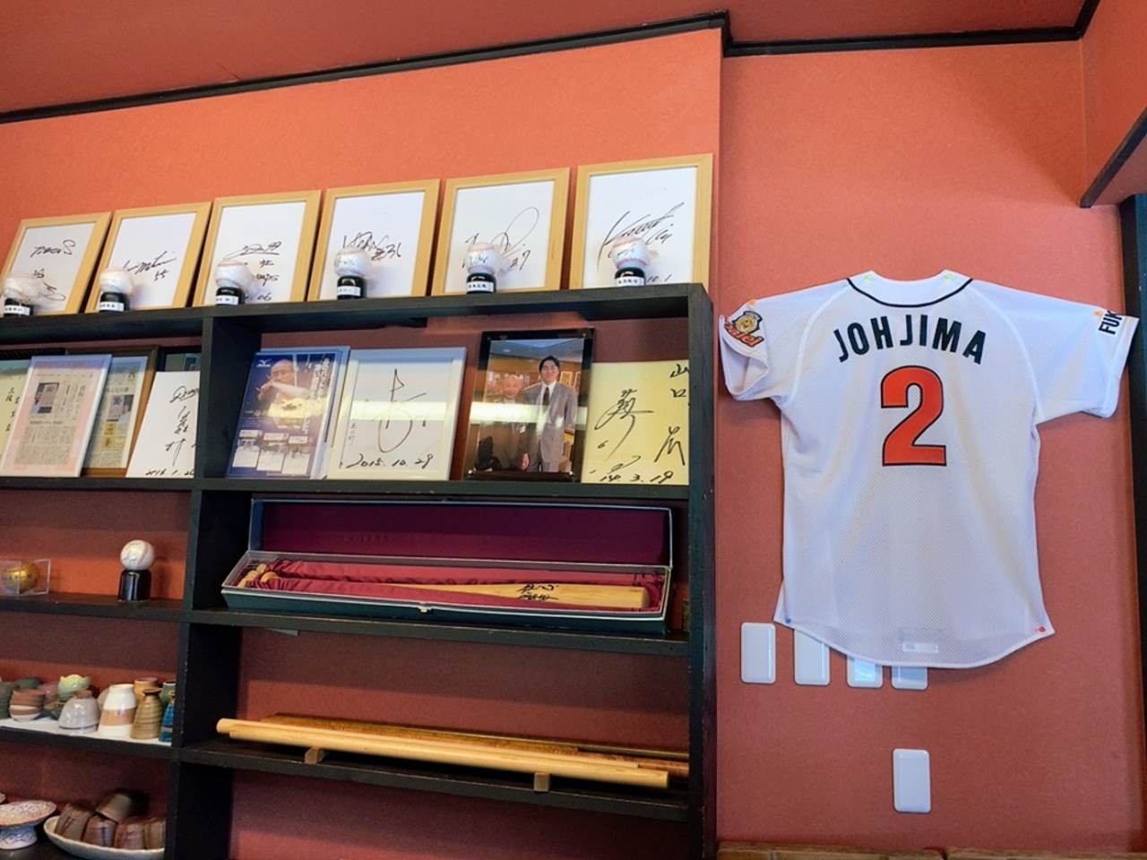 カウンター席からは、バット職人が作ったバットや有名野球選手のサインボールを見ながら蕎麦を楽しめます!
