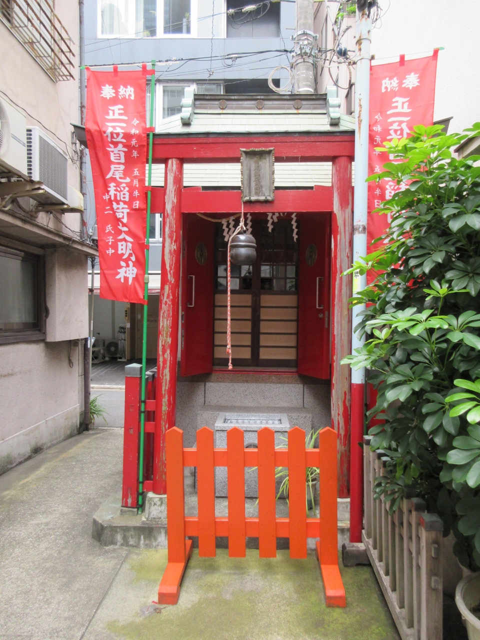 芝大門交差点近くに建つ吉野家とクリエイトの間の小路を入った、住宅地にひっそりと建っています。1696年、難病に苦しんでいた田村三郎兵衛さんが、神のお告げにより命を助けてもらったことに感謝し、勧進したと伝えられている稲荷神社です。その後、伏見稲荷から神階を与えられ、地元の人たちが神社を守り続けています。特徴ある神社ではありませんが、神社の裏には、明治時代の小説家・尾崎紅葉生誕の地と書かれた説明板が立っています。