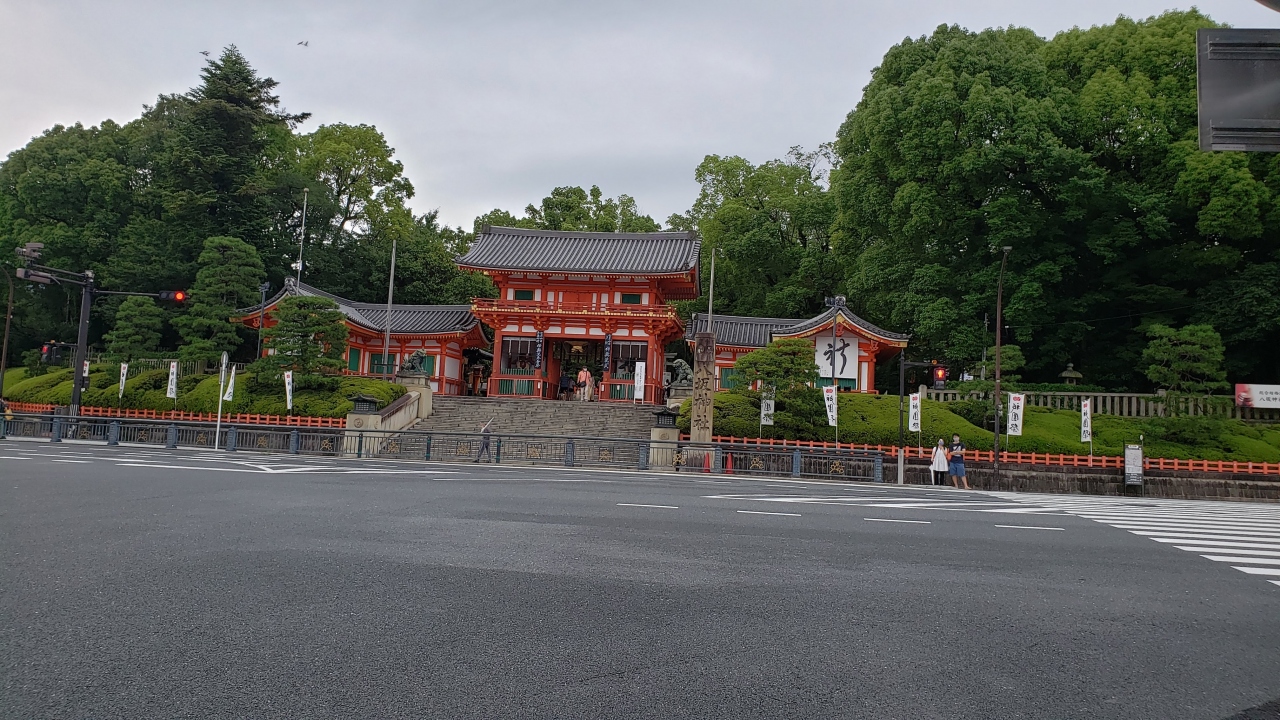祇園のシンボル的な位置づけの神社。入口にある朱色の門がとても印象的です。美と恋のパワースポットということで地元の若い女性からも人気。全国にある八坂神社の総本寺でもあります。本殿の前にある舞殿が印象的な神社でした。
