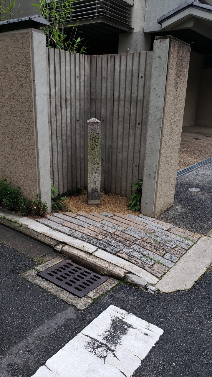 滞在先のホテルからすぐそばだったので行ってみました。現在は何も残ってはいませんが石碑だけありました。京都の町中は突然行為のがあったりするので歴史が幾重にも積み重なってすごいと思う。近くにも茶屋四郎次郎の家跡があったり三井両替商の屋敷跡なんかもさりげなくあった。