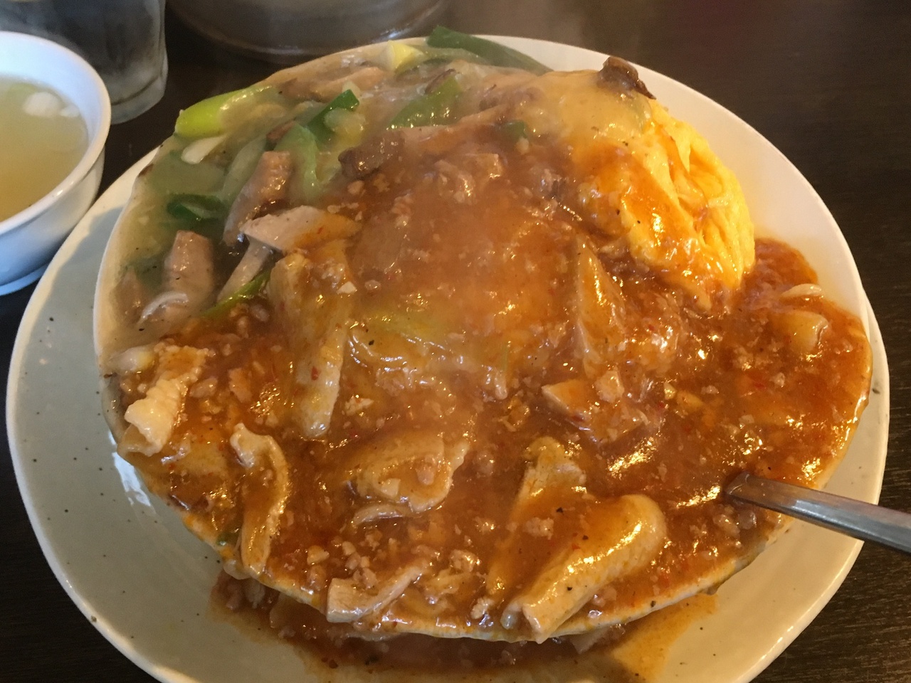 武蔵小金井駅北口から歩くと30分ぐらいか、新小金井街道沿いの食堂。昼前から開店を待つ行列でテレビでもデカ盛りで紹介されている店と知りました。店主がひとりで調理しており着丼まで時間がかかります。俵飯はいわゆるあんかけご飯で完食しましたがちょっと飽きました。