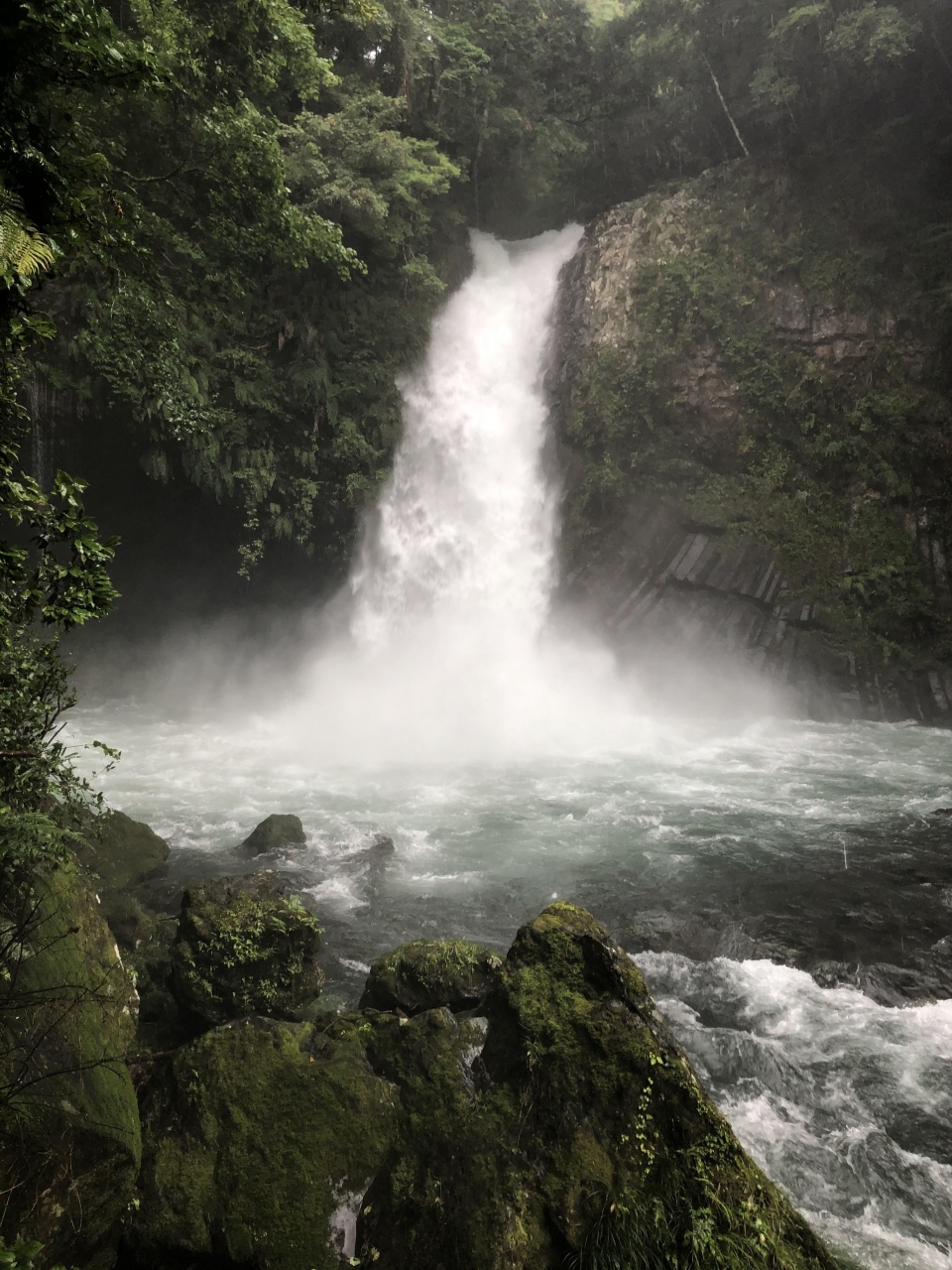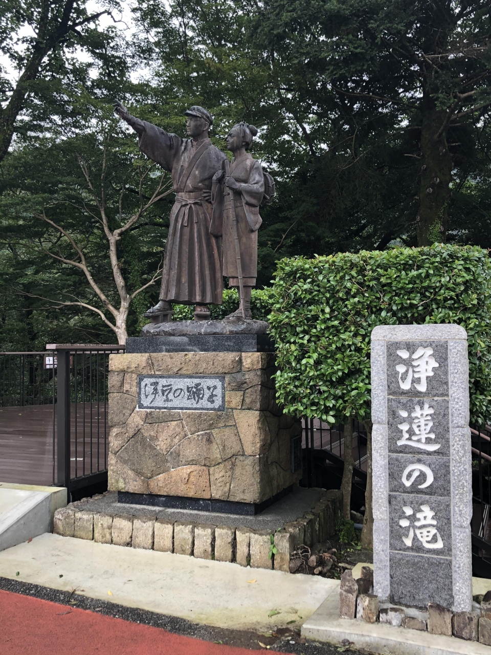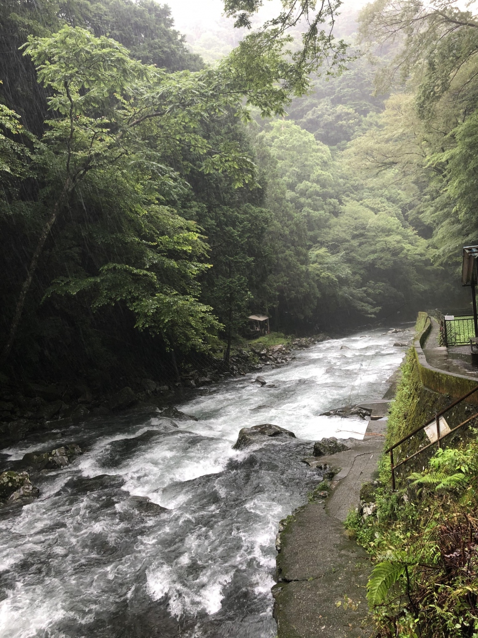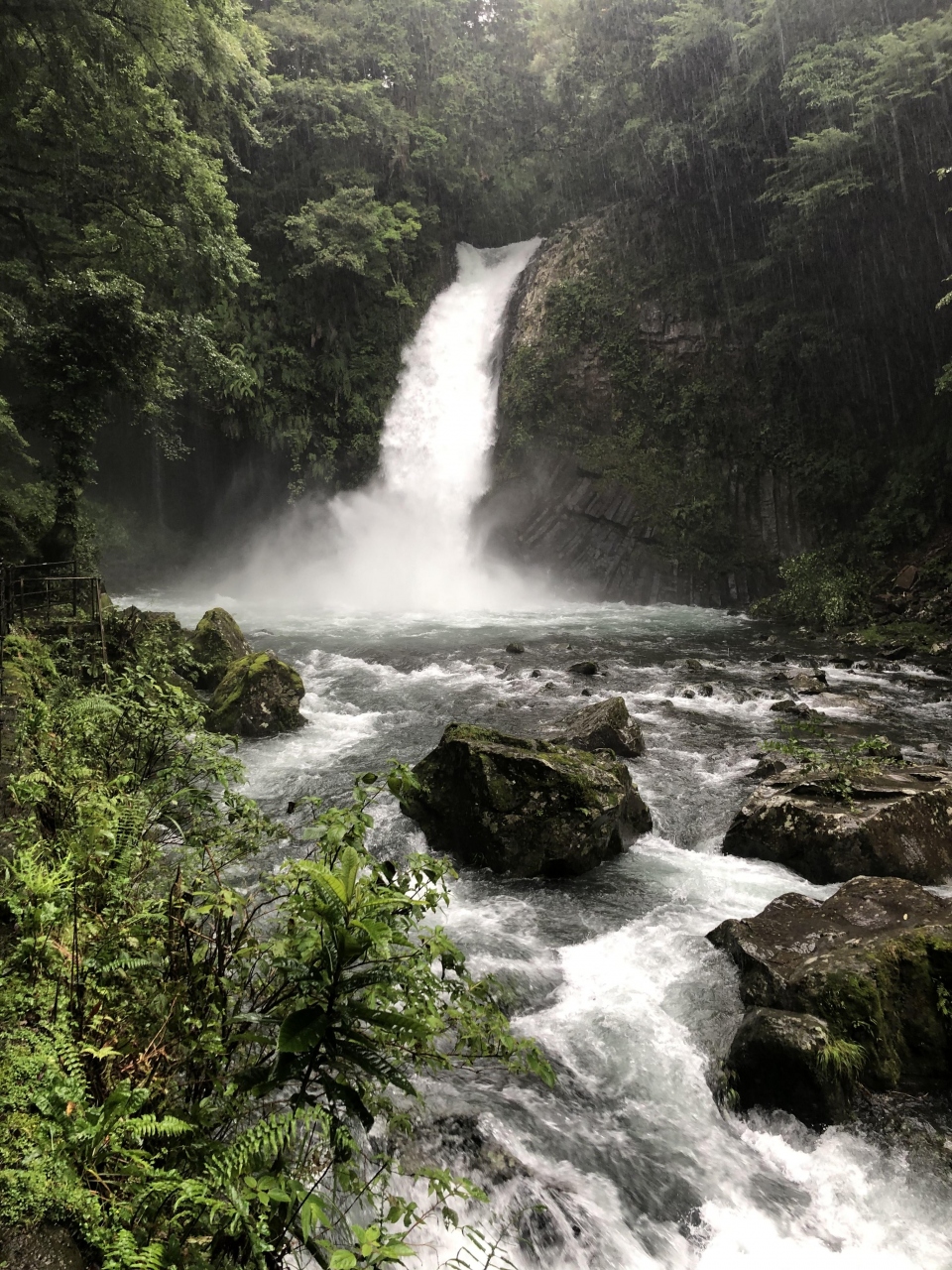 非常事態宣言が解除された週末、伊豆を代表する観光名所である浄蓮の滝を訪れた。深い樹木が生い茂る中にある、玄武岩の崖にできた高さ25m、幅7mの見事な滝である。この日は梅雨のさなか、雨水を集めて普段の3倍ほどの水量が流れ落ちていた(茶店の店主より)。