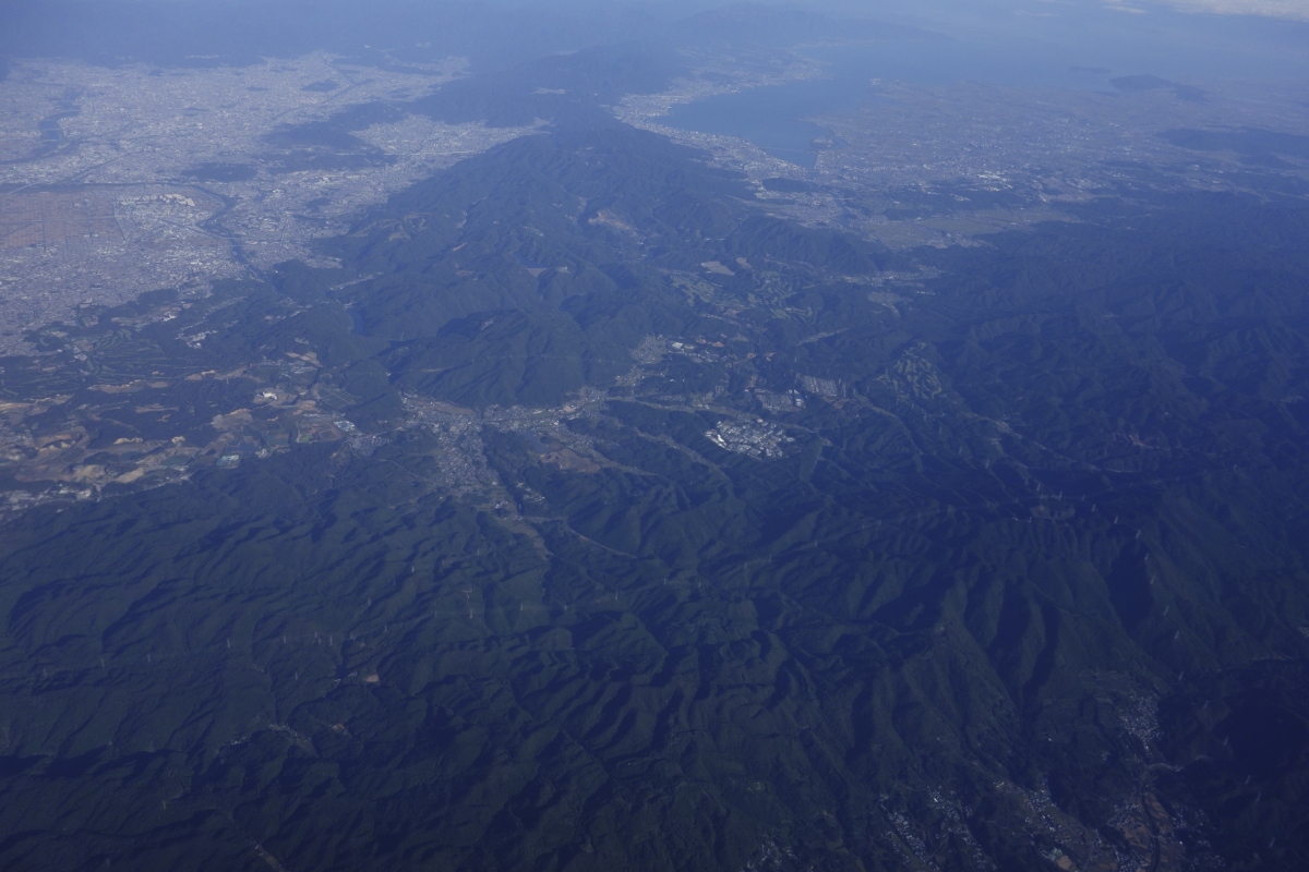 大阪・伊丹空港から羽田空港へ向かう飛行機が京都付近上空を通過、東に向かうと、宇治川に建設された天ケ瀬ダムと、深夜電力を利用した揚水式ダム、喜撰山発電所を一望に見ることができます。天ケ瀬ダムは、瀬田洗堰と一体運用で琵琶湖からの放水量調整と、水道、発電対応の多目的ダムとして機能していますが、影の姿、喜撰山貯水池と一緒に見ることができる機会は意外なくらい少ないです。