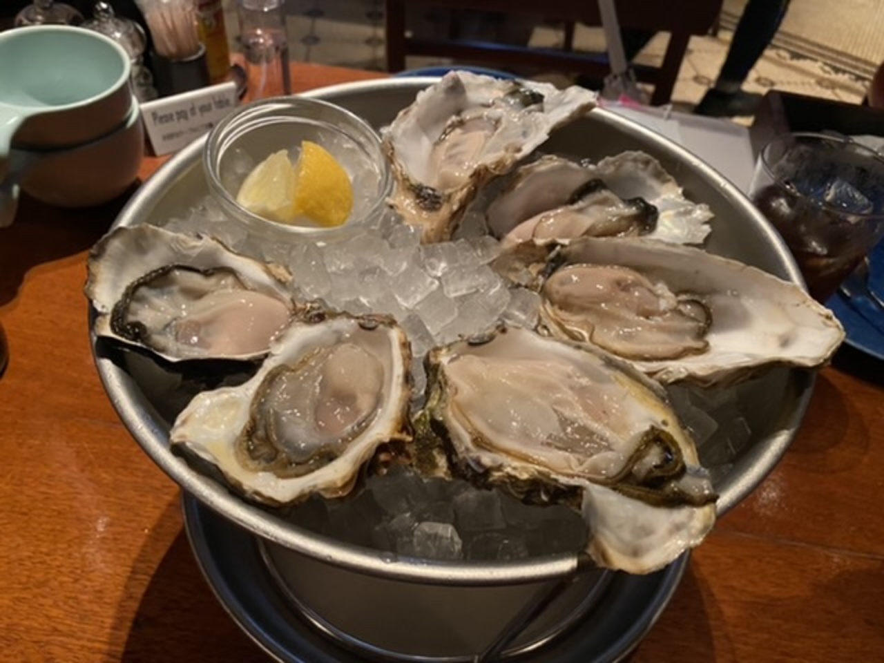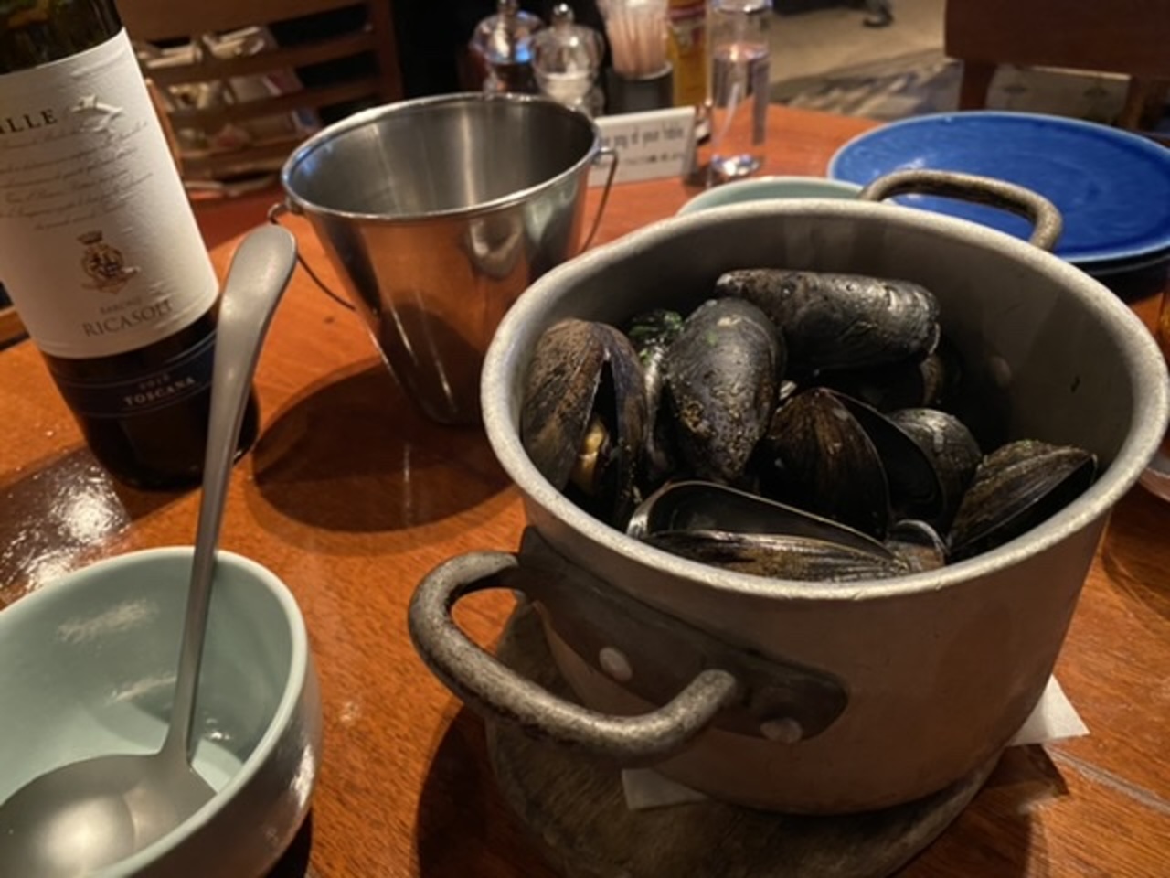 先ずは生牡蠣!北海道、盛岡、広島産です。そしてムール貝の白ワイン蒸しをバケツで、、、肉はビーフ、ポーク、ラム!赤ワインでナイスでした(^^)