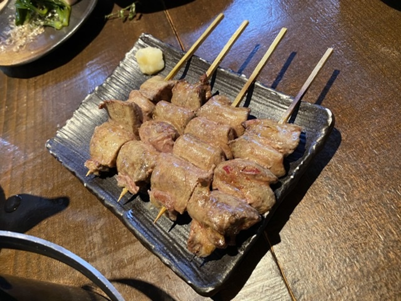先ずは生ビール!ツユムラサキとオクラのお浸し、鳥わさ、牛すじ煮込み、白レバー串!あとはガチンコレモンサワーをおかわりはヤカンで!