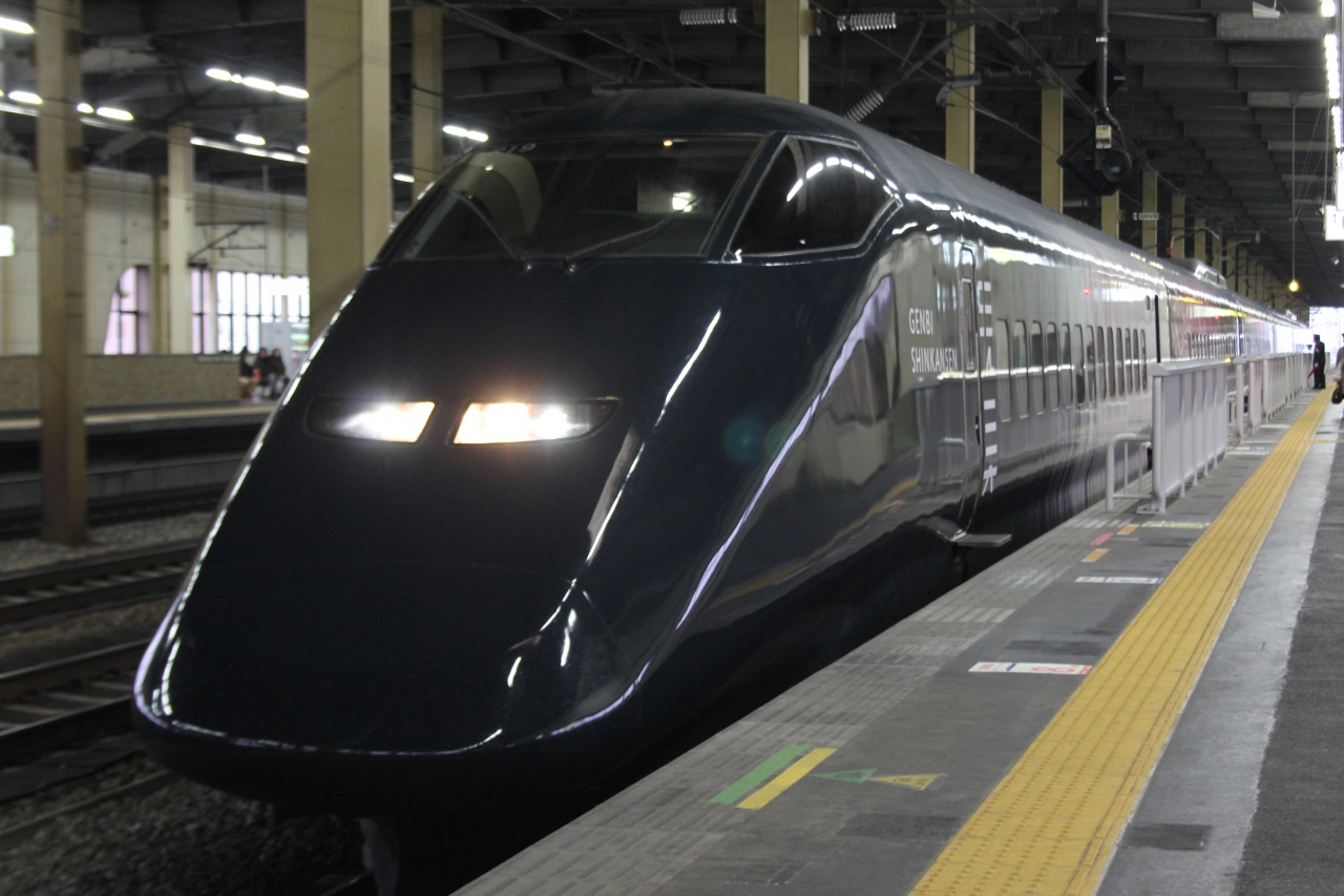 越後湯沢と新潟を結ぶ芸術新幹線。外観は長岡の花火をイメージしており、非常に目立ちます。車内はギャラリーになっており、動く美術館です。鑑賞できるソファを置かれていますが、座席代わりで埋まってしまいます。事前の予約できる指定席は1両のみで、混雑します。話のネタに乗ってみるのも面白いと思います。