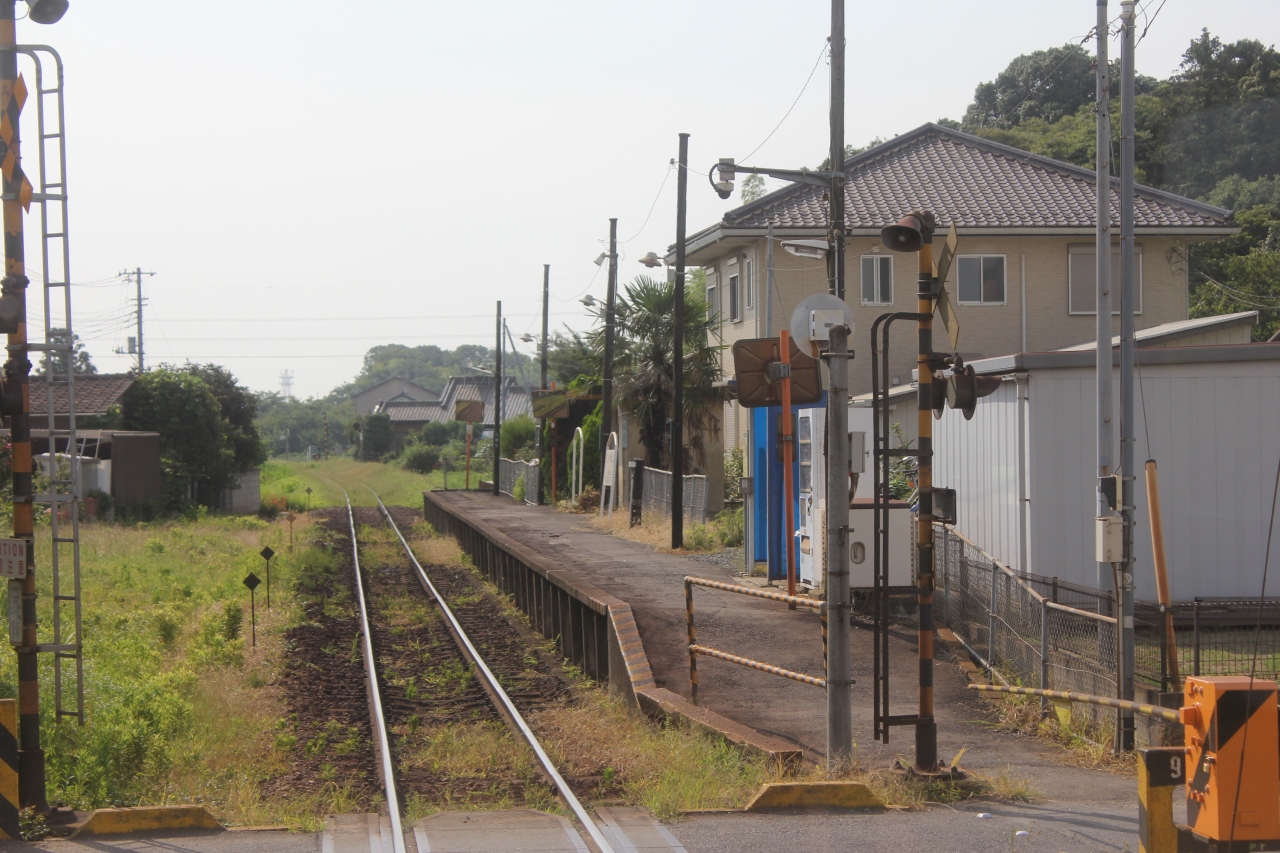 関東鉄道の支線でJR龍ヶ崎駅に隣接する佐貫駅から竜ケ崎に至る4.5キロの鉄道です。JRの佐貫駅が龍ヶ崎に改称されましたが、関鉄駅は佐貫のままで、かえってややこしくなりました。のんびり田園風景が楽しめます。線路はみどりの絨毯が敷かれているようでした。