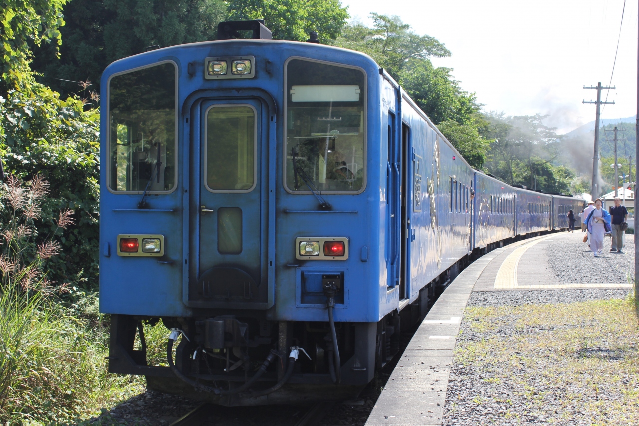 花巻と花巻を1日かけて走る観光SL列車です。車内に宮沢賢治に因んだ展示や簡単なプラネタリウムもあり、楽しめます。上下列車ともに、遠野では1時間以上の観光停車があり、外でランチを取ることもできます。客車の外観は夜明けをイメージした青いグラデーションになっていますが、近くで見るとわかりません。
