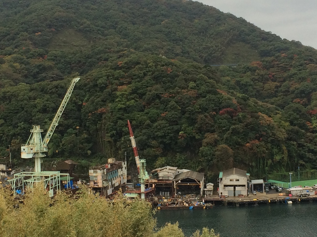 ちょっと地味な世界遺産になっていました。いまだに民間の会社?に使用されているので、自由に見学したり入ったりは難しそうでした。上から眺める感じになってしまいました。ボートと緑やブルーのクレーンが並んでいました。