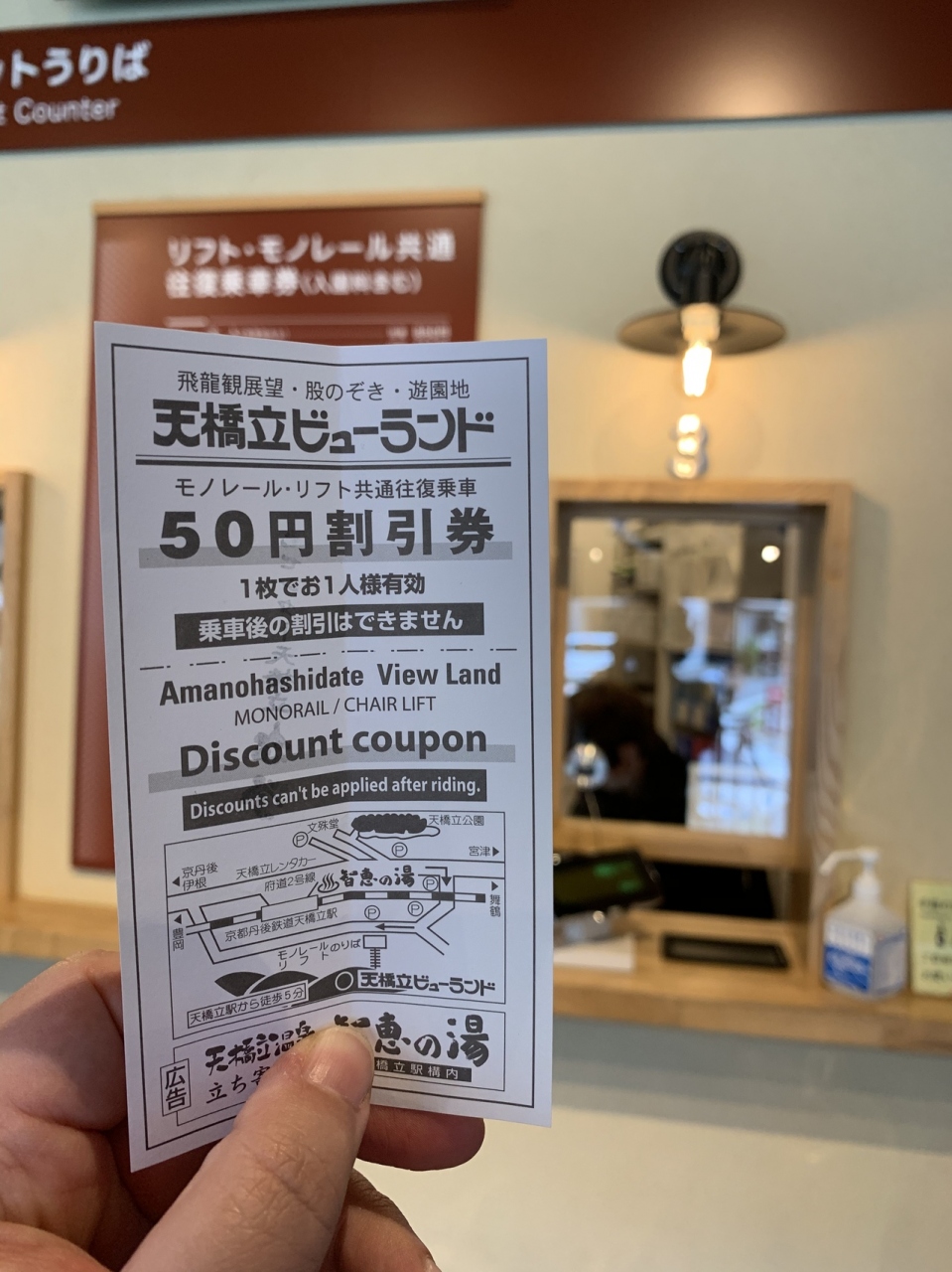 天橋立ビューランドの入園料も含んでいて、リフト/モノレールの往復で850円って随分良心的な値段設定だなと思いました。 近くの駐車場を利用した時、50円の割引券を頂くことも出来たので、800円で利用できました(同じ割引券がネットからもプリントアウト出来ます!)