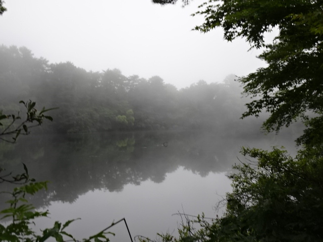 晴れていれば、木々の姿が水面に映り、リフレクションがとてもきれいに見える沼だと思いますが、少々ガスっていました。まあ、それはそれで神秘的な印象でした。