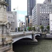 天満橋、天神橋とともに浪華三大橋と称され、浪速の名橋50選にも選定されています。歩道がひろくゆとりのある造りで、中之島に降りていく階段などもえぇ雰囲気を出しています。北詰と南詰の四隅にはライオンの像があることからライオン橋ともよばれています。