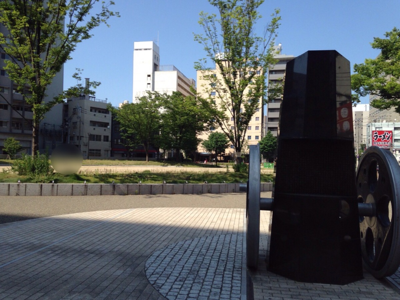 博多駅から承天寺を目指して大博通りを歩き、大博通りから一本入った所にありました。とくに特徴のない広場にも見えますが入り口には九州鉄道発祥の地碑があり、他にも博多駅と書かれた円柱のモニュメントがありました。かつて博多駅がこの辺りにあったそうで、鉄道ファンの人には嬉しい場所ではないでしょうか。