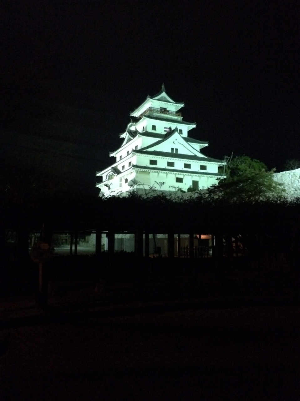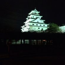 佐賀城のお城で、夜はライトアップされていました。夜も警備員さんがいて、見回りをされていたので、安心でした。お城は、公園にあるので、ベンチに座れば市内の夜景も多少見えました。遠目に見るだけでも6階くらいありました。