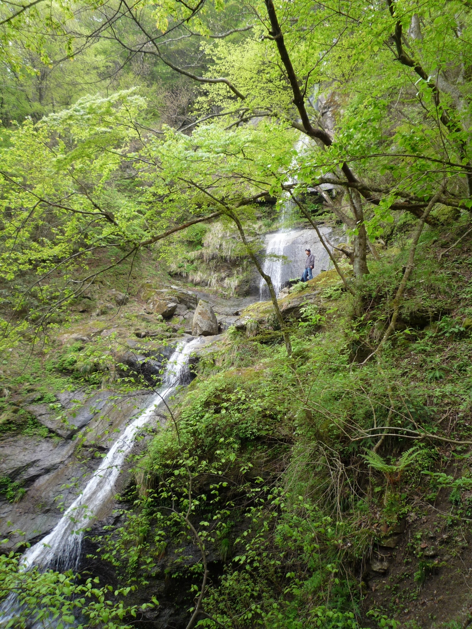 看板があったので立ち寄ってみました。少し山道を歩かなければなりません。完全に自然な道でした。細く長い滝が特徴で音や水しぶきによるマイナスイオンを感じることができました。もちろん水もきれいで水遊びができます。