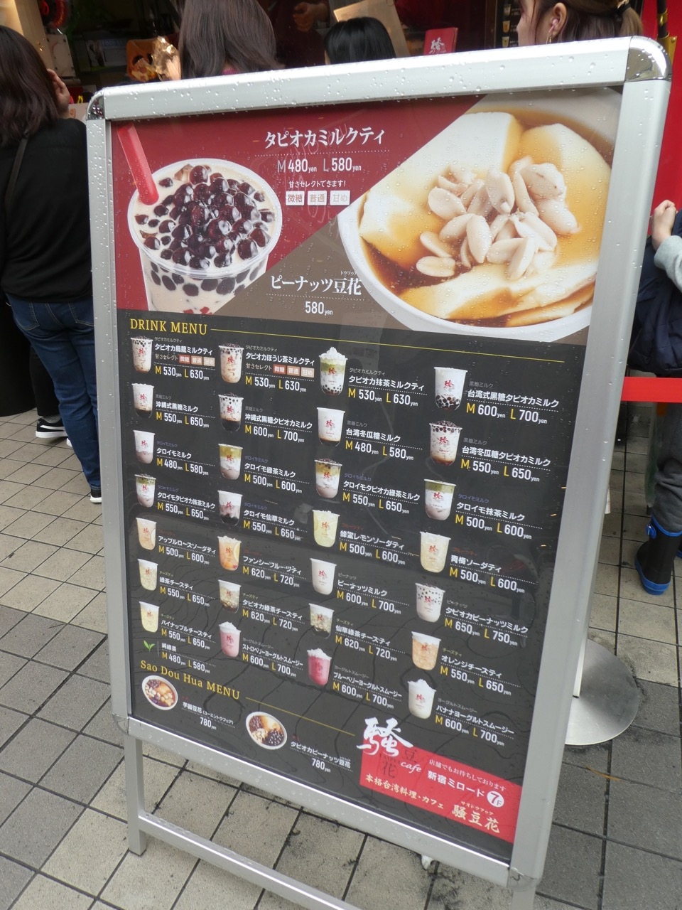 台湾の現地価格と比べるとけっこう高価な気はしますが、このメニューの多さがいいです。(こんなに種類あったっけ?)ときどき列ができていますが、そう長くはなく手軽に味わえるのがいいです。