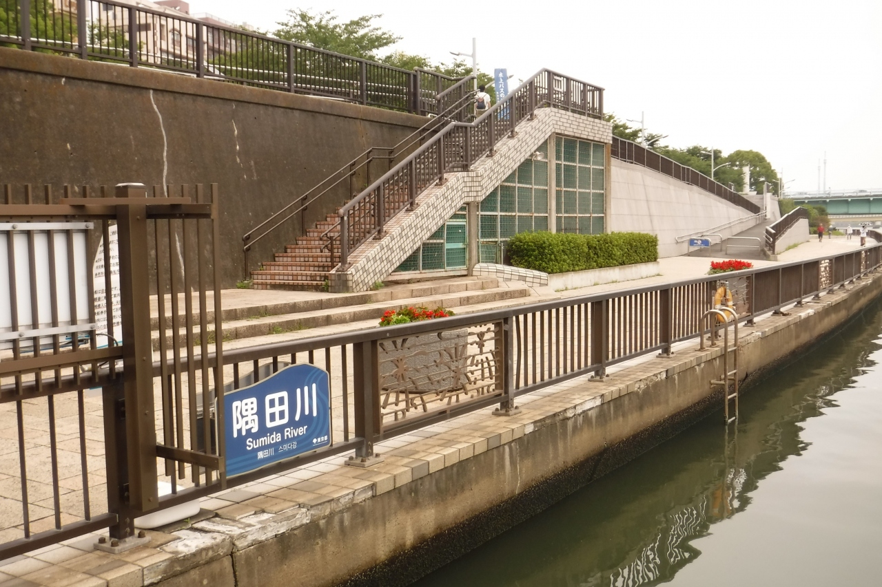 水上バスに乗るために、この隅田川テラスに降りて、船を待ちました。