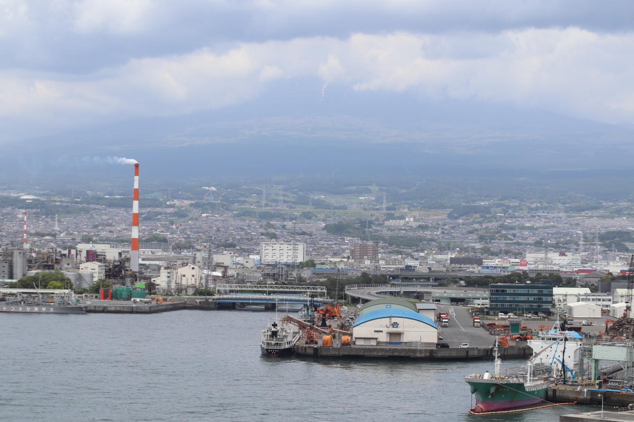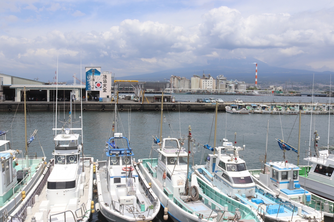 静岡の海上輸送の要衝で国の重要港湾に指定されています。その一部に漁港がありますが、最寄の吉原駅からも歩いて30分以上かかります。漁港から港湾越しには、この日は雲に隠れていましたが、晴れていれば富士山が見えます。漁港食堂の生しらす丼がお勧めです。