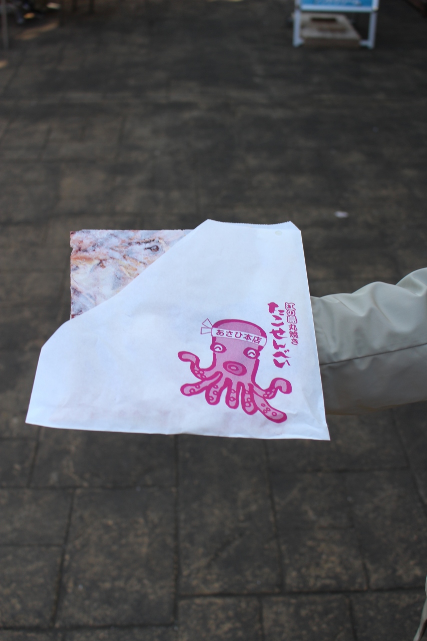 タコや海老などを鉄板でプレスしたおせんべいを食べることが出来ます。