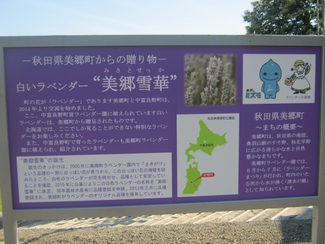 そして、近年ここの知られざる名所として注目されつつあるのが、”白いラベンダー”で、これは、ラベンダーを圓に友好提携をしている秋田県の美郷町から贈られた”美郷雪華(みさとせっか)”という品種だそうです。元々は普通のラベンダーの中に混じっていた白いラベンダーの株を増殖させて品種として改良されたものとのことで、北海道内でこの品種が見られるのはここだけらしいので、是非観に行ってみて下さい。