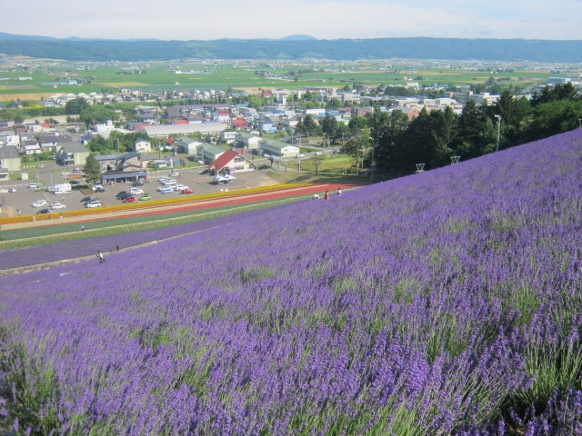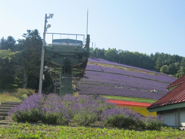 ファーム富田のようにお店が沢山ある訳ではないです(お花畑の下に一軒だけお店があります)ので、ゆっくり座ってラベンダー何ちゃらとか、メロン何とかを食べたい方には、ファーム富田の方がお勧めですが、こちらのラベンダー園は、北星山というスキー場のある山の斜面に植えられていますので、勾配がきつくてそれだけダイナミックな角度でのラベンダーを堪能できます。