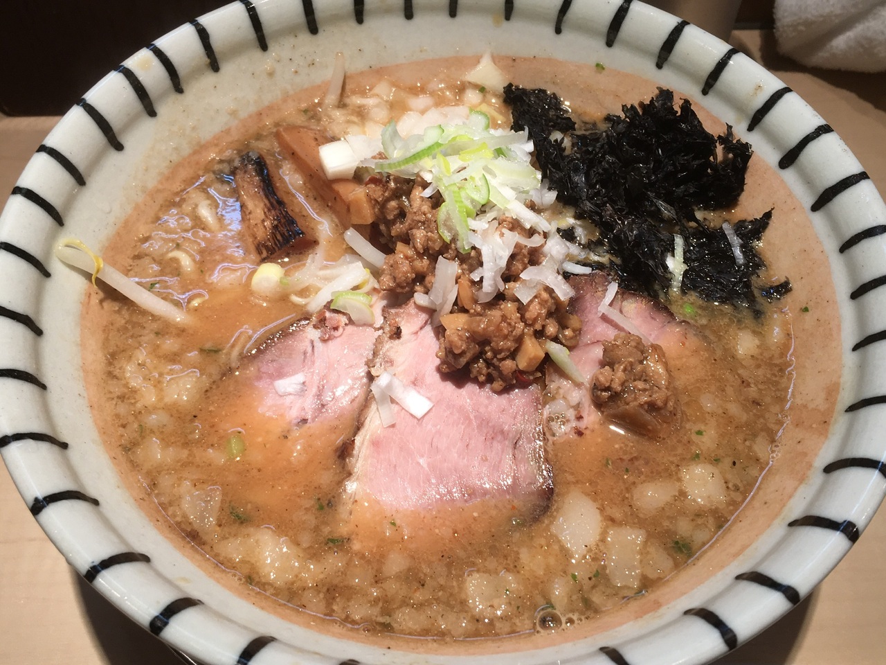 新潟の燕三条ラーメンのお店。武蔵小金井駅北口から徒歩3分。カウンターのみの小さな店で土曜昼過ぎ、ちょっと並びました。豚骨や煮干出汁の醤油味に背脂が投入され、たまねぎがアクセントになってます。背脂の量は選ぶことができます。