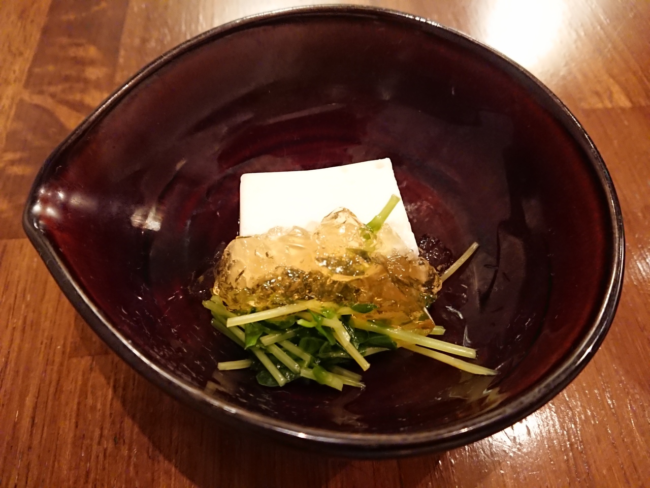 天婦羅蕎麦の前菜として胡麻豆腐が付いていて、これがまた美味。