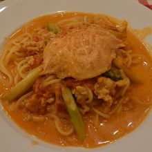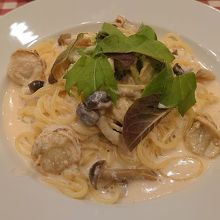 クリーム系のパスタを食べましたが、生パスタを使っているので食感がもちもちしていておいしかったです。