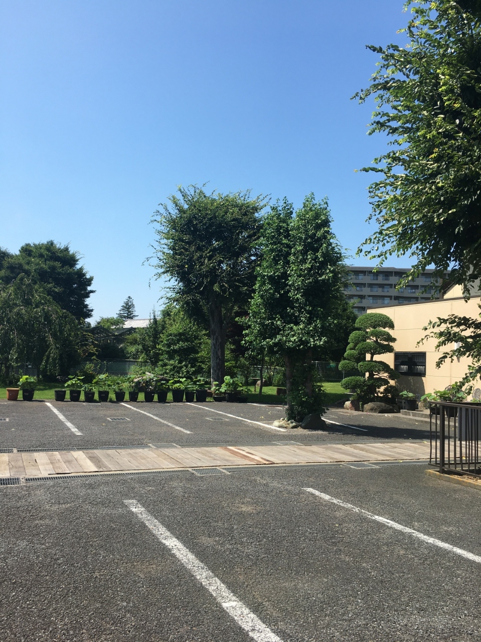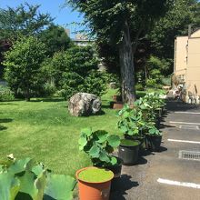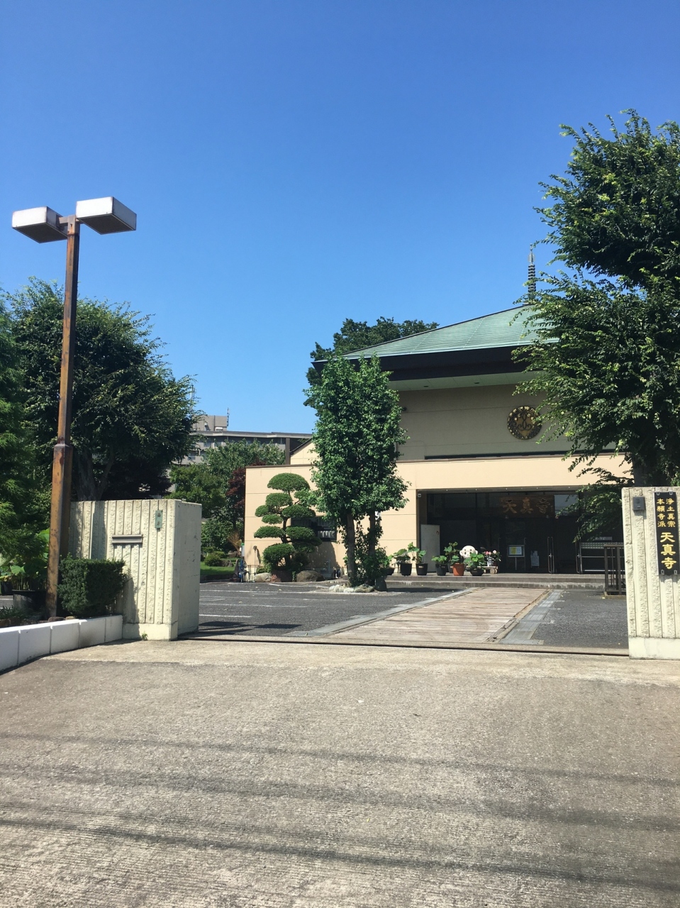 門の中に入ると直ぐにコンクリートの駐車場で、その後ろには本堂があり2階建ての近代的な建物でした。植木がたくさん置いてあり、生えている草木も整備されていました。門の横には綺麗な石碑があり、それ以外は観光ぽくない寺でした。