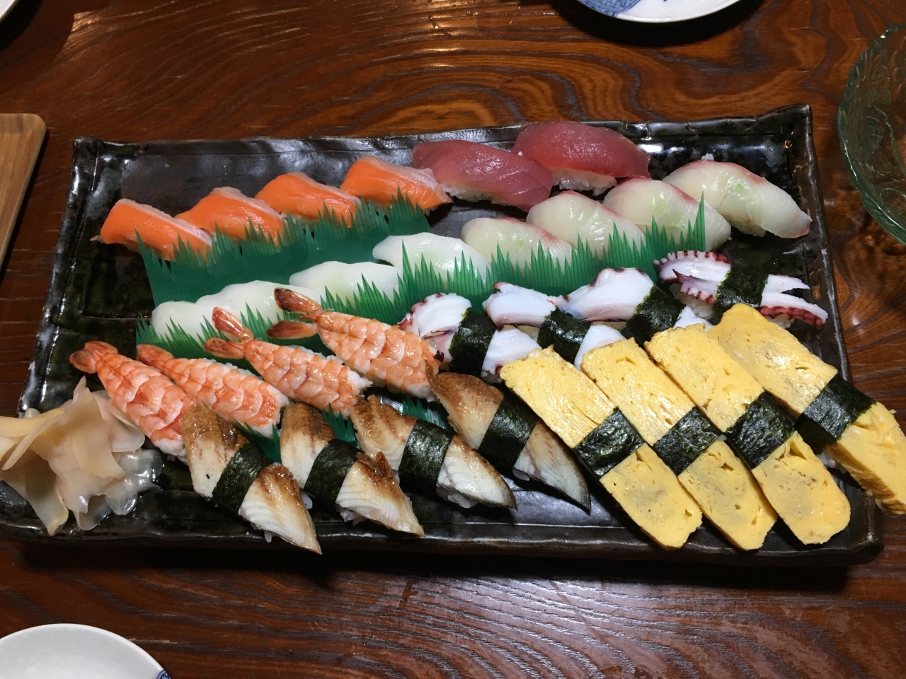 寿司割烹ですが、地元の居酒屋であり、食堂でもあります。早い時間に入りましたが、地元の人が続々入店してきました。みな顔見知り、夜の憩いの場といったお店でした。メニューはなんでもあり、寿司のほか、ピザまでいただきました。