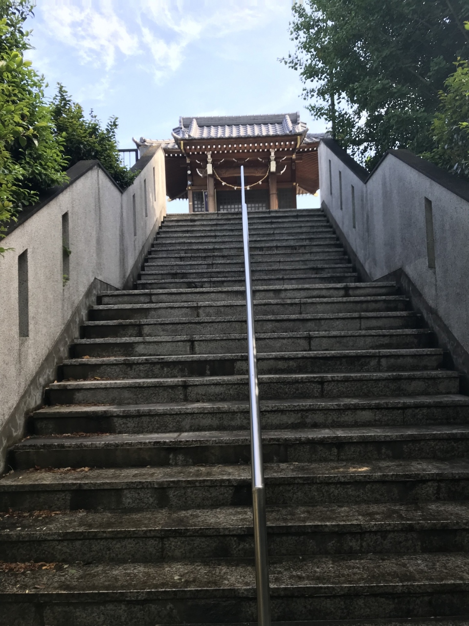 拝殿は建物の2階にあります。神社に行くのに階段を登ることはよくありますが、こういう形で登ったのは初めてでした。
