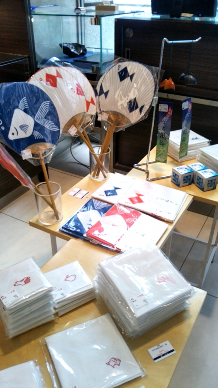 夏らしい涼し気なふきんと団扇や風鈴が販売されていました。