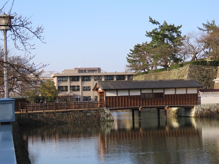 本丸と西三ノ丸の御座所を往復するための専用の橋だったそうです。松平春嶽ら数人の藩主は本丸の屋敷ではなく西三ノ丸の御座所に居住していたとのことでこの橋が機能していました。築城400年の記念事業として復元されました。