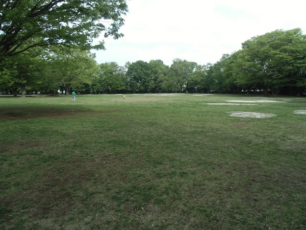 また、芝生のあちこちに埋めてある白い陶片は、貝塚の位置を現しています。