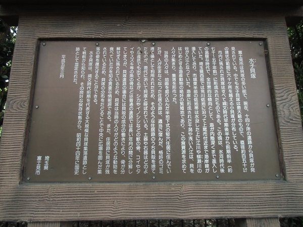 説明板によると、貝塚は縄文時代早期後半から前期前半(約7千~5千年前)に形成されたものだそうです。