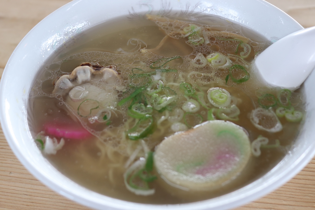 宗谷岬の丘の上、宗谷岬公園内にある最果てのラーメン屋です。厨房を囲むカウンターと小上がり、テーブル席です。塩帆立ラーメン、熱い油膜のはったスープは意外とさっぱりで、さらっといけました。ほかにご飯ものもあります。