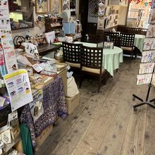 喫茶コーナーは 小さめで 暗めで テーブル2つくらいです。