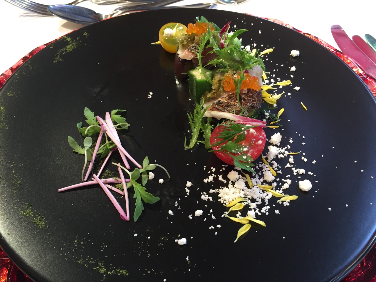もう、美味しいし、盛り付けもお花やソースで目でも楽しませていただけるし、