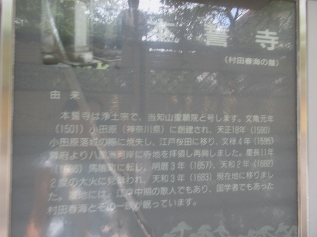 清澄白河を散策した際に見つけたお寺です。場所は清澄庭園までの道沿いですので、庭園に行く際には便利な場所だと思います。村田春海という国学者のお墓があるとのことで、参拝させていただきました。浄土宗のお寺で、太田道灌の孫にかかわるお寺だそうです。ちょっと近代的な山門や本堂でした。お地蔵様などの石像もありましたが、行ったときは参拝者は多くなく、静かなお寺でした。