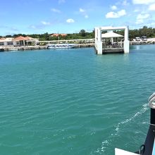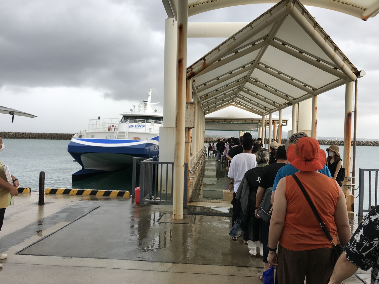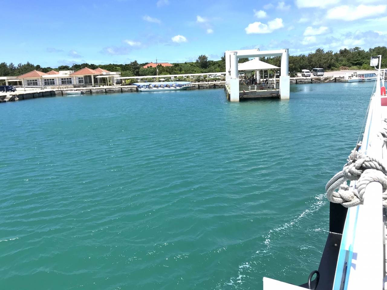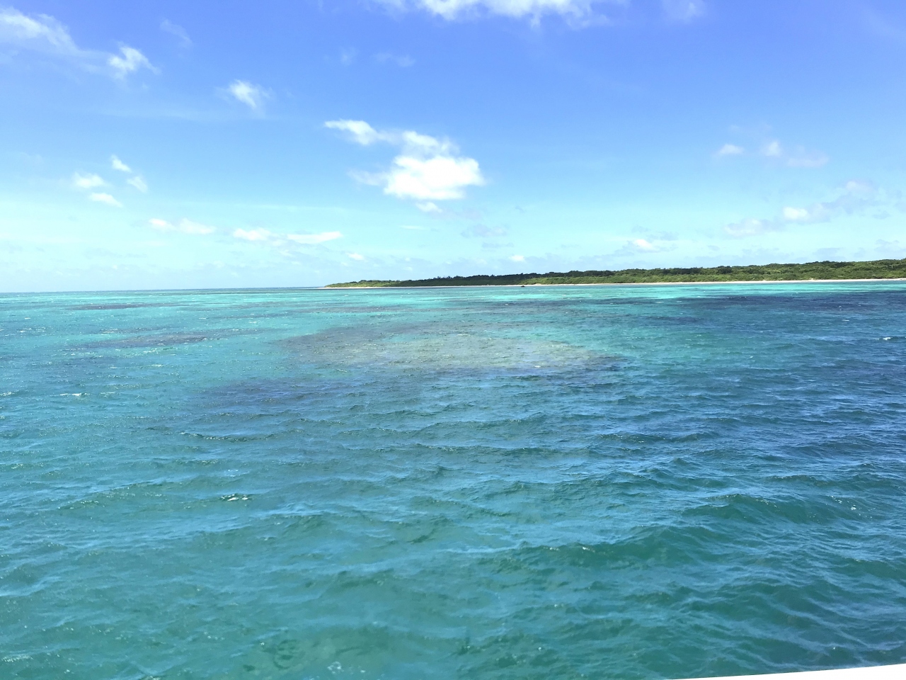 島まじかになると右側の島伝いにコバルトブルーの凄い海になります