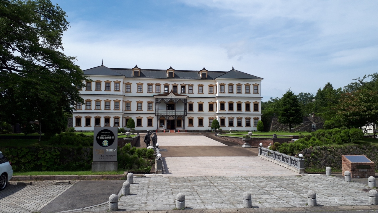 明治40年鉱産額日本一を記録し、杤木県の足尾銅山、愛媛県の別子鉱山とともに日本三大銅山と並び称さられ、小坂に理想の社会を建設しようと考えられた。県内最初の電気利用、全町に上下水道施設,県下一の総合病院、東北一の大劇場(康楽館)などまさに文明開化の最先端を突き進んでいた時の鉱山事務所。らせん階段と1階から3階まで1本の秋田杉はみごたえあり。