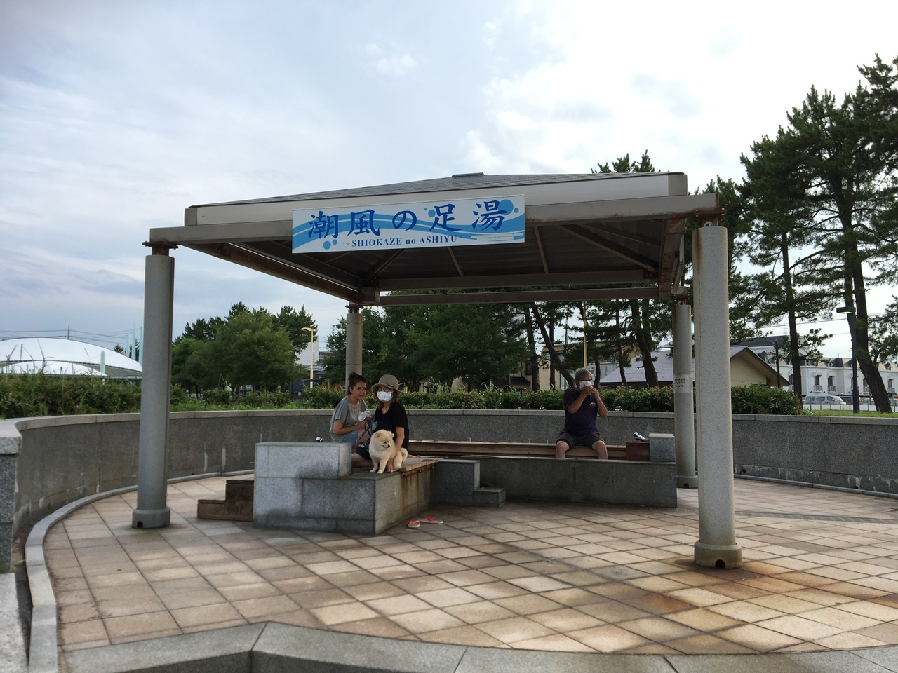 皆生温泉海浜公園の中にある足湯です。温泉街の中ほどにあり、散策ついでに入れます。海沿いではなかったですが、少し高台になっていて、海も眺められます。海から吹く風を感じながらの足湯が楽しめました。無料ですが、無人なのでタオルは必要です。