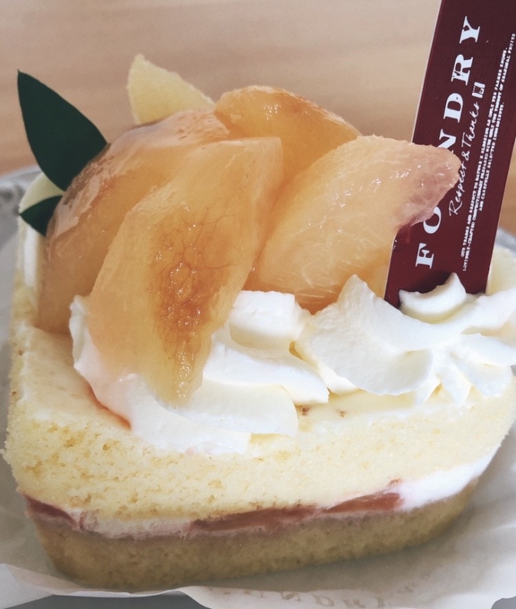723円の桃のショートケーキを購入しました。ファウンドリーのケーキは初めてです。