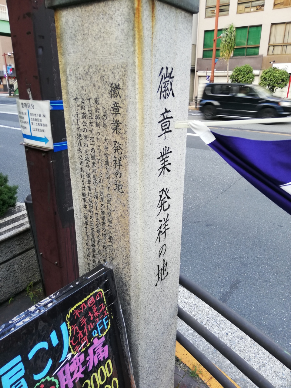 徽章とは偉い人がたくさん服につけているアレです。一言でいうとバッジですね。その徽章を作る産業が日本で始まったのがこの辺りと言うことで記念碑が立っていました。このような記念碑がなければ絶対に考えなかったと思います。そういう意味であってよかったものの一つかもしれません。