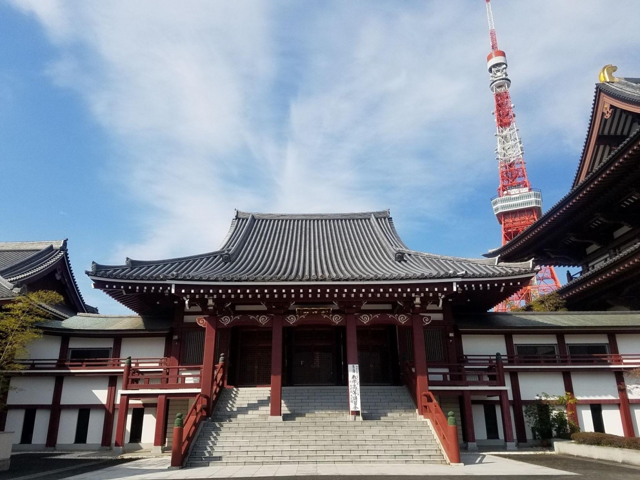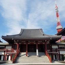増上寺の大殿に向かって左側にあります。内部は講堂や大広間になっていて訪れた時は講習会をやっていました。大広間の天井には120枚もの天井画があるそうなので機会があれば見てみたいですね。大殿と同様に背景に東京タワーが見える良い光景でした。