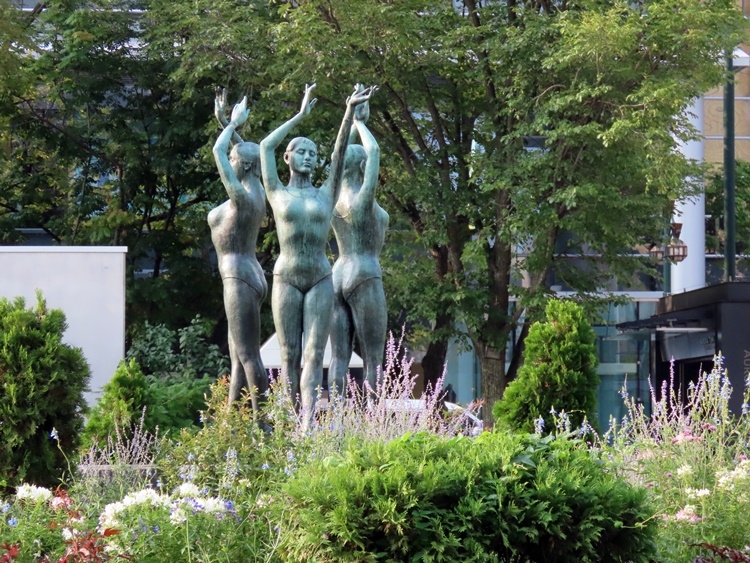 幼いころ札幌を訪れるたび、目に慣れ親しんだ大通り公園でも古参級の作品。当時絵ハガキでも繰り返し目にした記憶があります。札幌出身で日本を代表する彫刻家、本郷新の作で、札幌駅前にある牧歌の像に先んじて1959年に完成しています。噴水とテレビ塔と3つセットになった大通公園の象徴的ビジュアルですね。