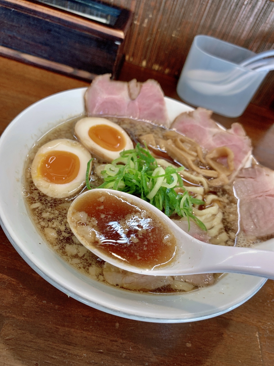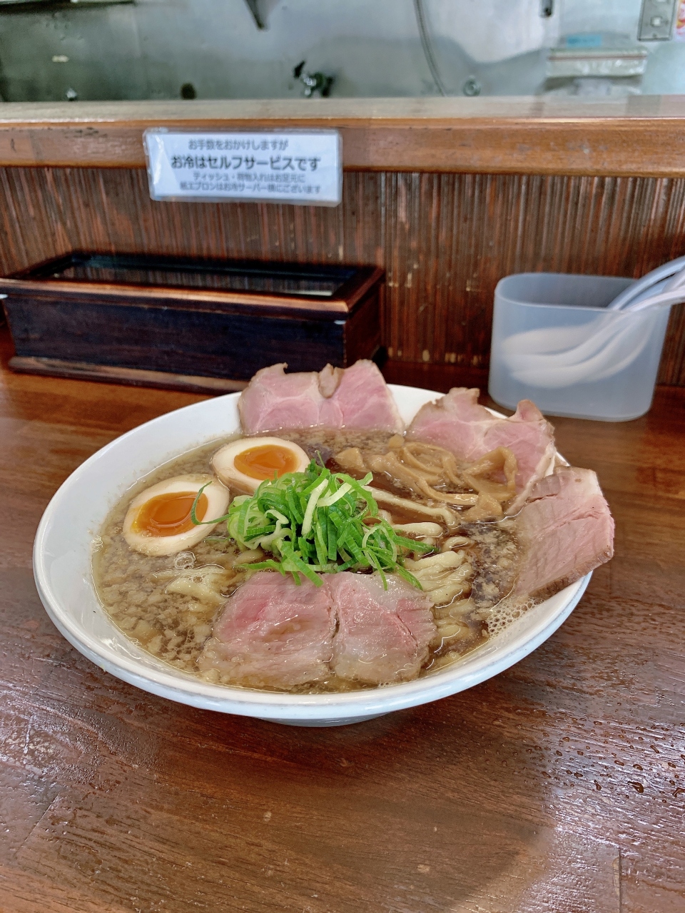 入店するとほのかな「煮干し」の香りがお出迎えしてくれます~セルフ水を注いで指定されたカウンター席に鎮座します!静かなオペレーションから待望の「煮干し」が配膳されてきました。