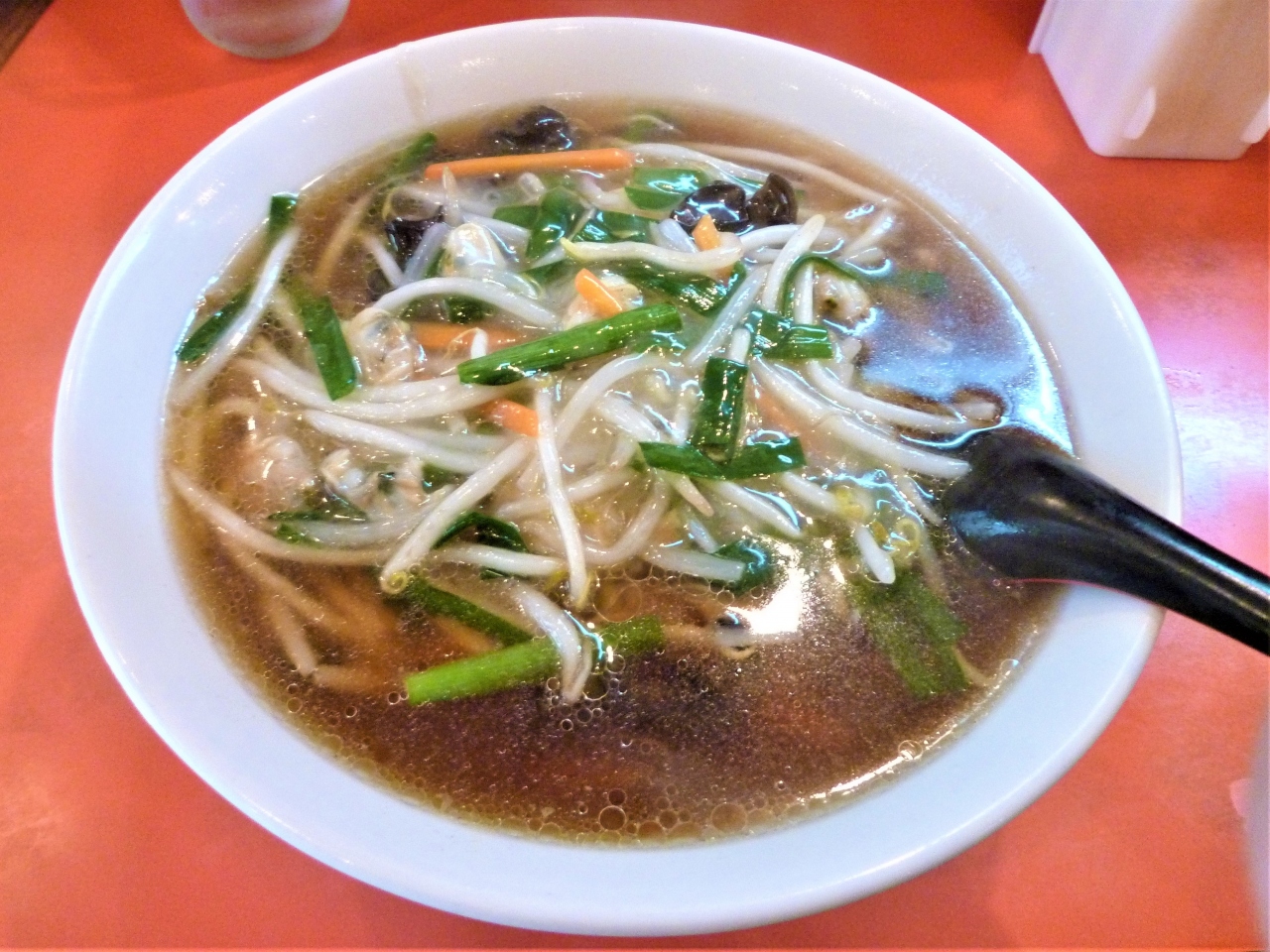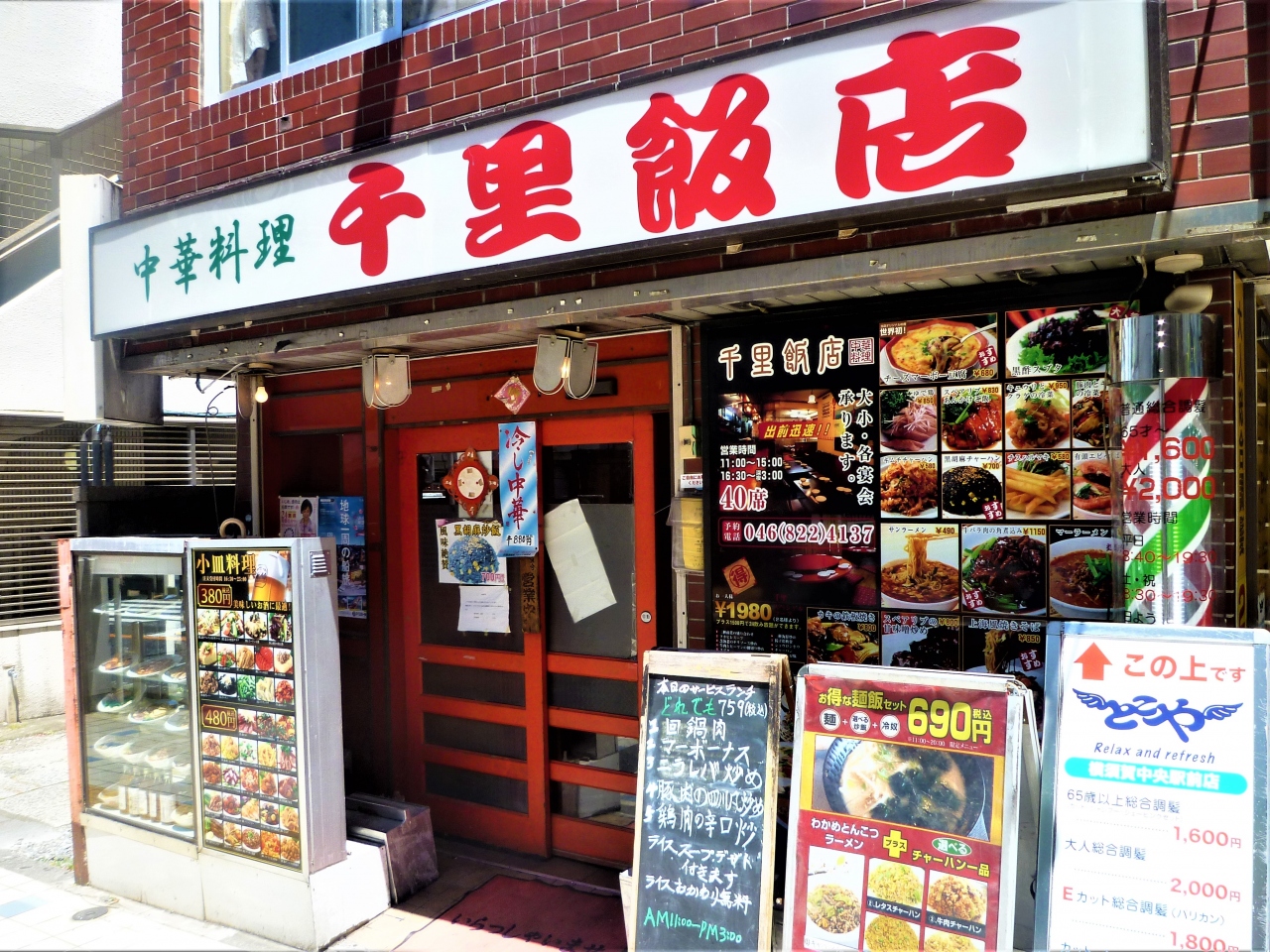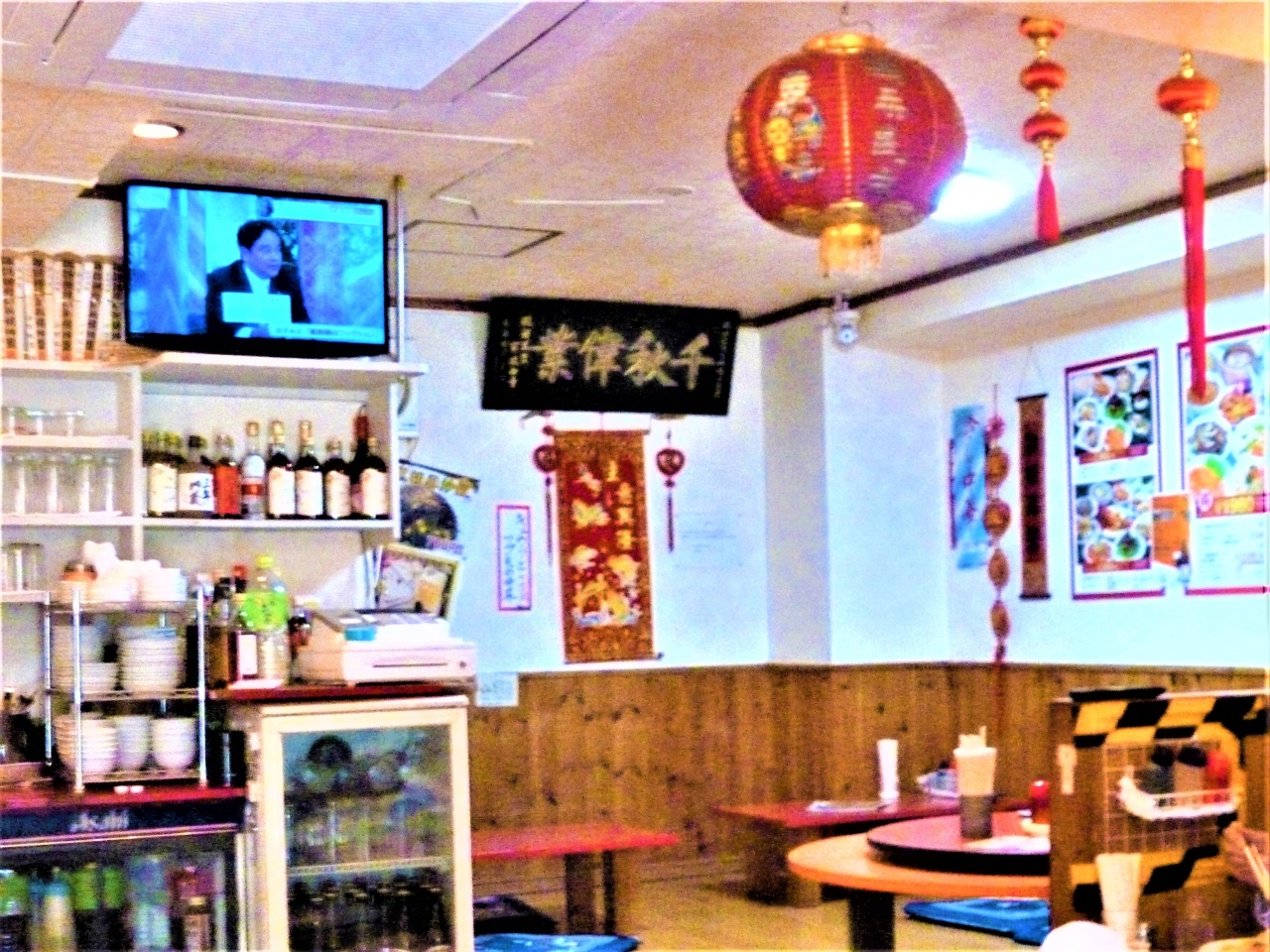京急横須賀中央駅(一階)から見えますよ/横断歩道を30秒!で[中華料理 千里飯店]に。お店のメニュー案内で`どれに決めたらいいの?`と迷って店内に…中華料理で大小の提灯が♪ `アサリ身(旬)と野菜麺`を頼みましたが、麺と沢山のアサリ身に(^o^)